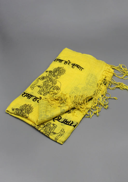Hare Ram Hare Krishna Printed Yellow Cotton Shawl