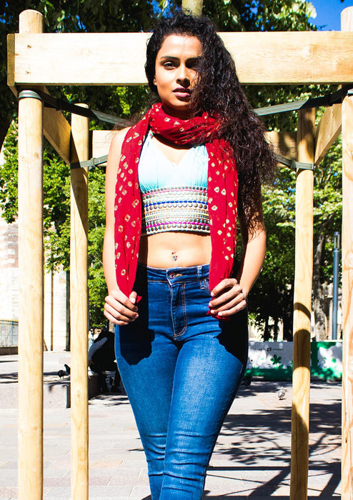 Also known as Bandini Shawls, This shawl is best for summer to keep yourself protected from direct sunlight. Wrap around the hair or create your own style, this shawl is the must have accessories in this summer season. The color is vibrant and looks amazing.