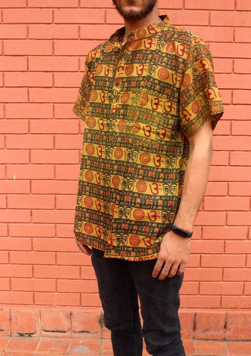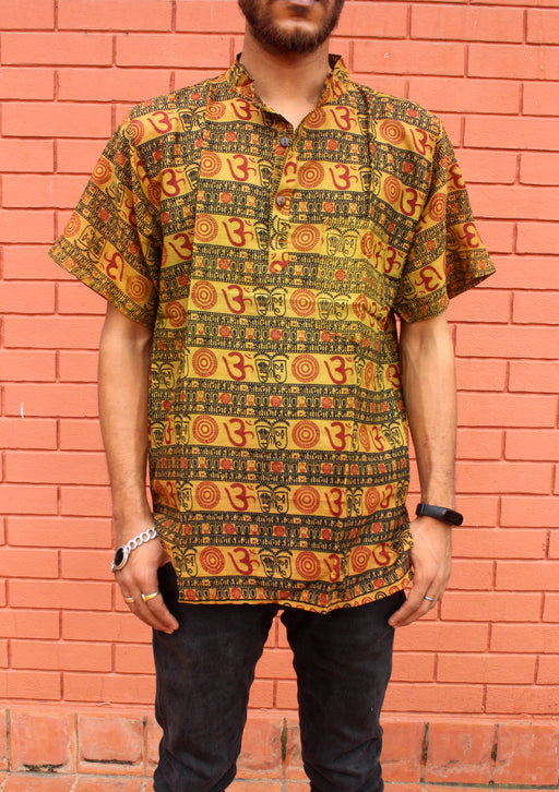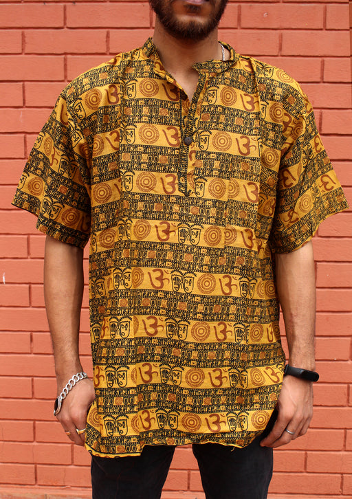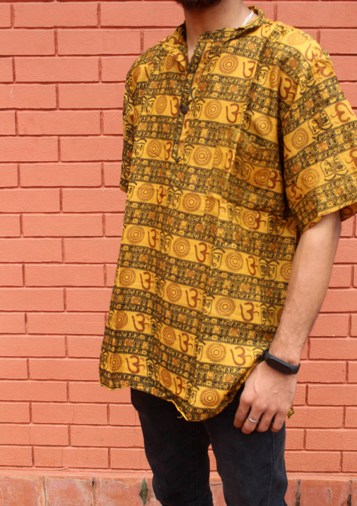 View full detailsDark Yellow Cotton Om Prayer Shirt/ Yoga shirt with religious symbols