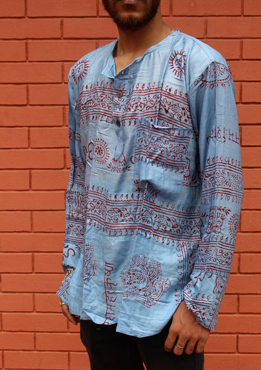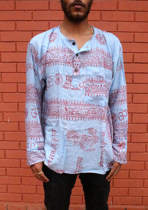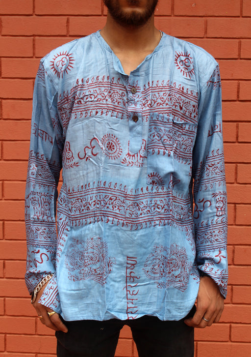 View full detailsLight Blue Cotton Om Prayer Shirt/ Yoga shirt with religious symbols