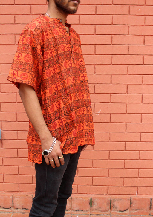 View full detailsOrange Cotton Om Prayer Shirt/ Yoga shirt with religious symbols