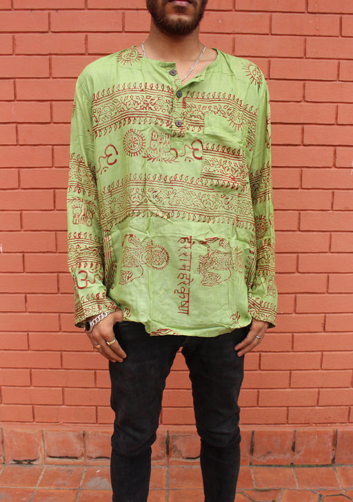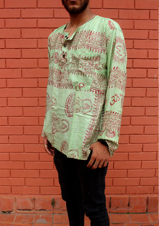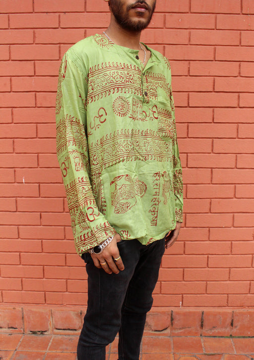 View full detailsParrot Green Cotton Om Prayer Shirt/ Yoga Shirt with religious symbols