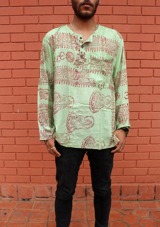 Embrace peace and spiritual energy with our Om Prayer Shirts, which are comfortable, breathable, and ethically handmade in Nepal. Featuring the sacred Om symbol and traditional prayer motifs, these shirts are perfect for yoga, meditation, or casual wear.