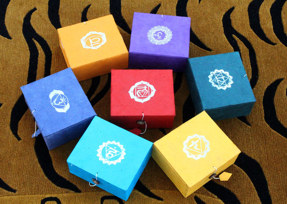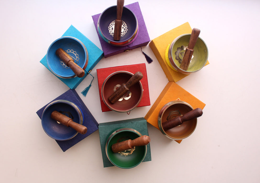 Seven Chakra Signs etched Singing Bowls Gift Box set