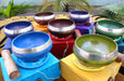 All Seven Chakra Signs embossed Hand Painted Singing Bowls set with 7 Pillows and 7 Stupa sticks in Gift Boxes