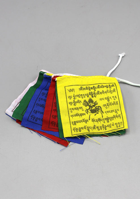 This is a set of 5 mini Polyester Prayer Flags with windhorse. This prayer flag is hanged horizontally to promote peace, success, long life, prosperity and wisdom. The prayer flag has 5 different colors with Windhorse mantras associated with the same.