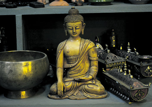 This is a unique resin statue of Shakyamuni Buddha handmade and hand painted in Nepal. The Hand-painted Resin Shakyamuni Statue, a true masterpiec...