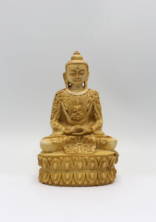 This is a Resin statue of Shakyamuni Buddha. In this resin statue, Shakyamuni Buddha is seated in Dhyana Asana or Meditative Pose, also called Padm...