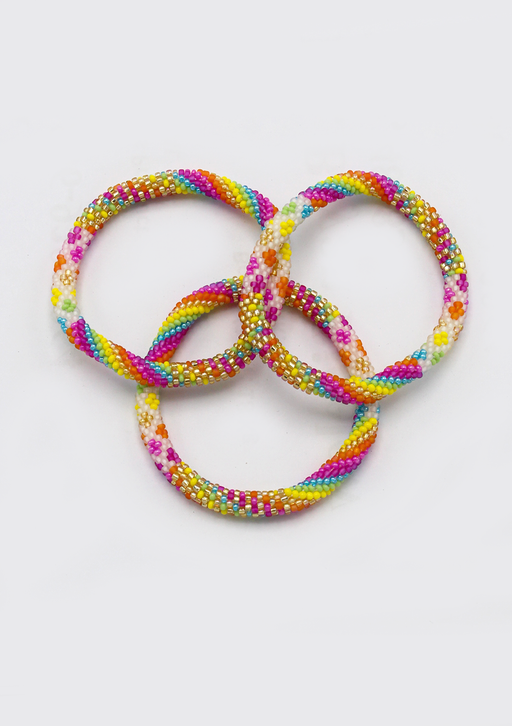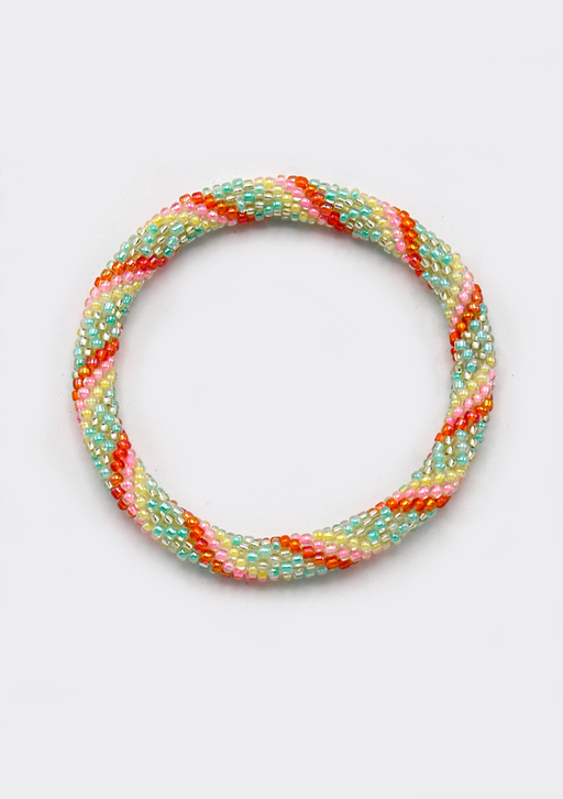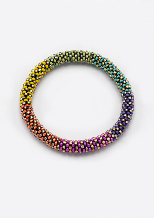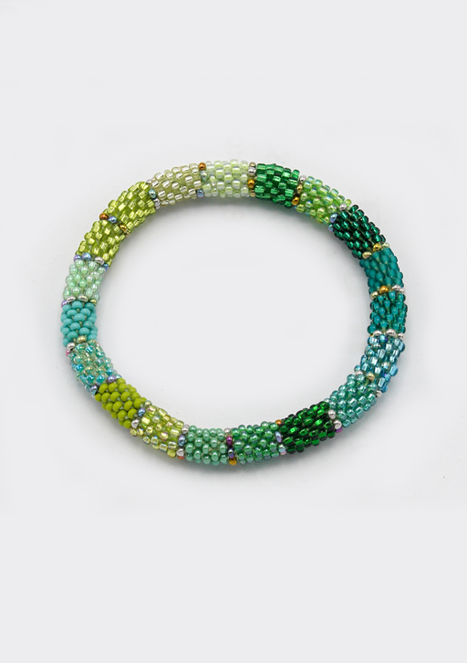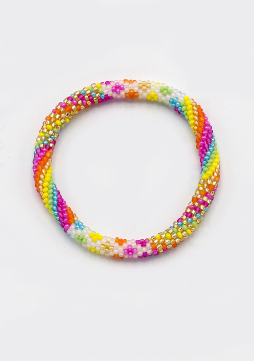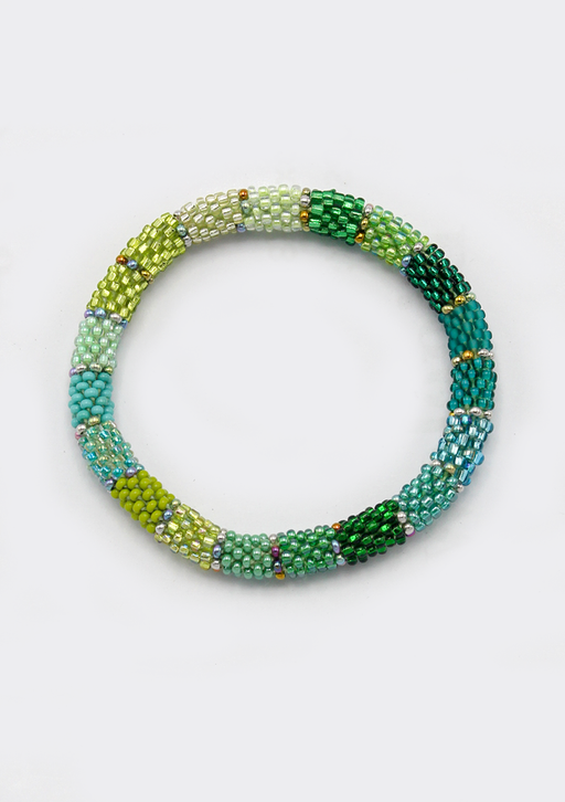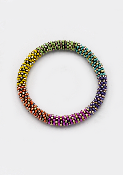 Our Roll Beads Bracelets are beautifully hand-crocheted by skilled women artisans in Nepal using high-quality glass beads. Designed to roll easily over any wrist size, these bracelets are both stylish and comfortable. Perfect for stacking or wearing alone, they add a vibrant, handcrafted touch to any outfit.