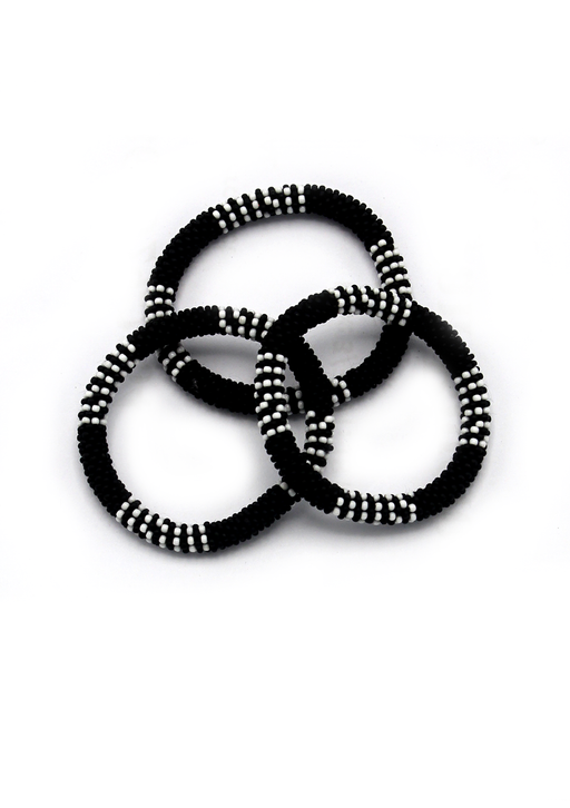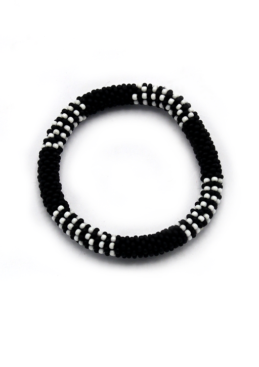 View full detailsBlack and White Gold Stripe Nepalese Roll on Beads Bracelet for Kids