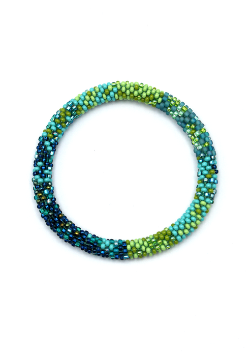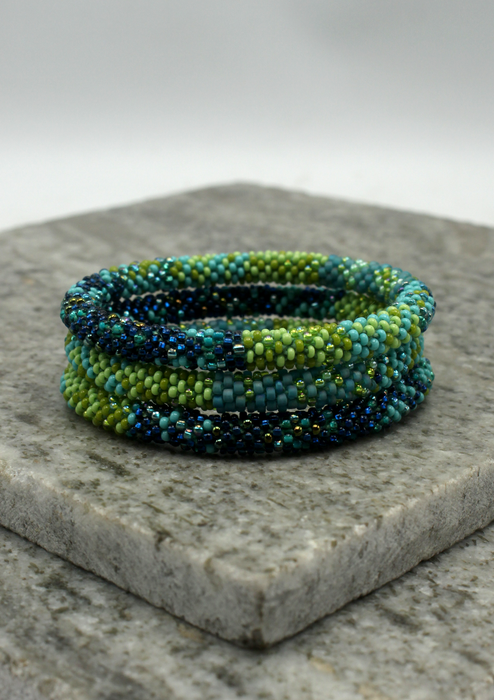 These fairly traded glass beads bracelet are meticulously crocheted by our women artists. Our woman artist carefully hand-strung these Roll On bracelet to give them the best shape and design.