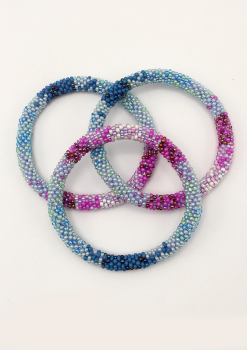 These fairly traded glass beads bracelet are meticulously crocheted by our women artists. Our woman artist carefully hand-strung these Roll On bracelet to give them the best shape and design.