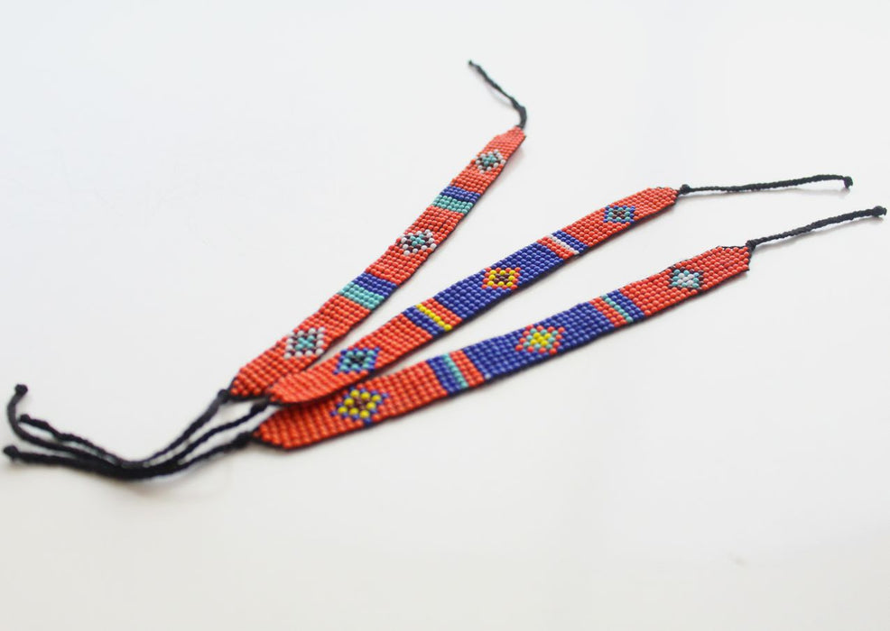 This is fairly traded glass beads bracelet mainly in the color coral with some assorted color beads and patterns designed for women.