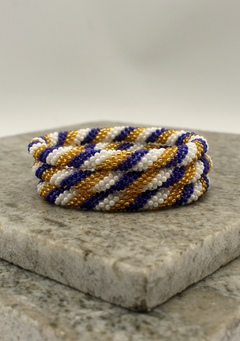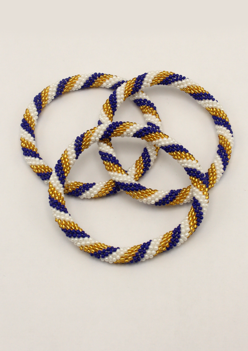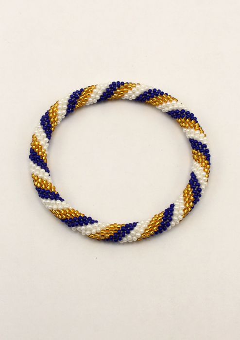 These fairly traded glass beads bracelet are meticulously crocheted by our women artists. Our woman artist carefully hand-strung these Roll On bracelet to give them the best shape and design.