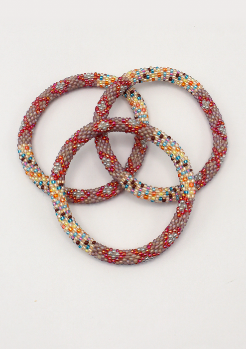 These fairly traded glass beads bracelet are meticulously crocheted by our women artists. Our woman artist carefully hand-strung these Roll On bracelet to give them the best shape and design.