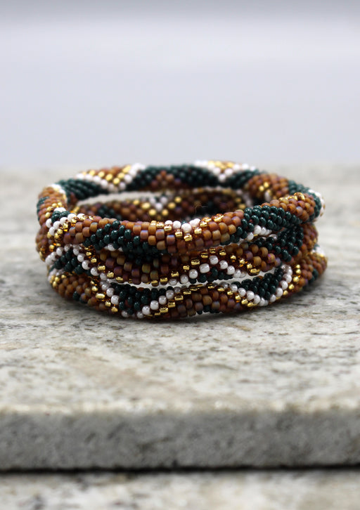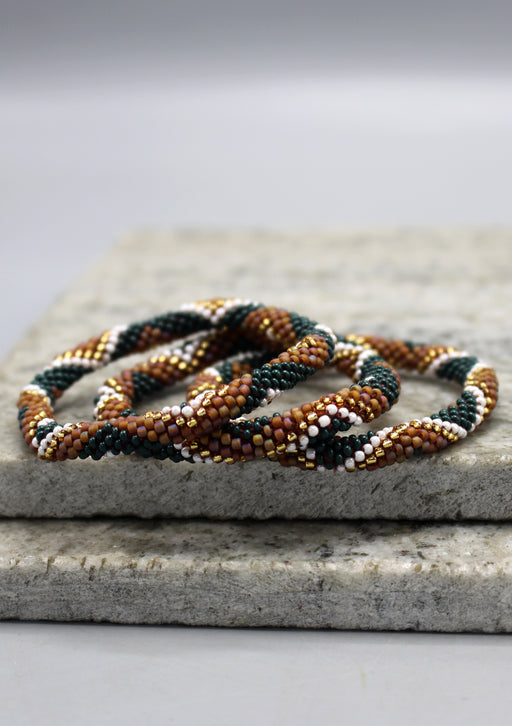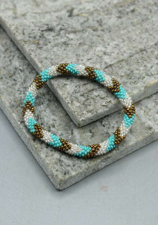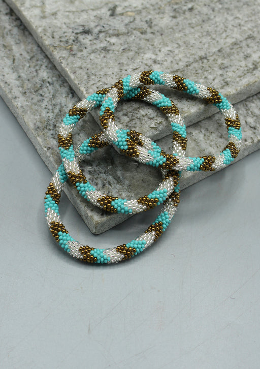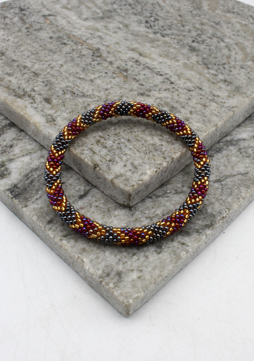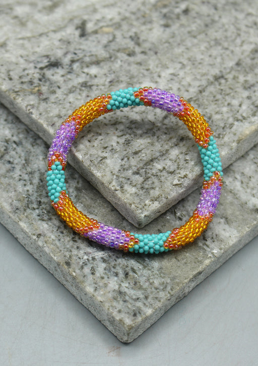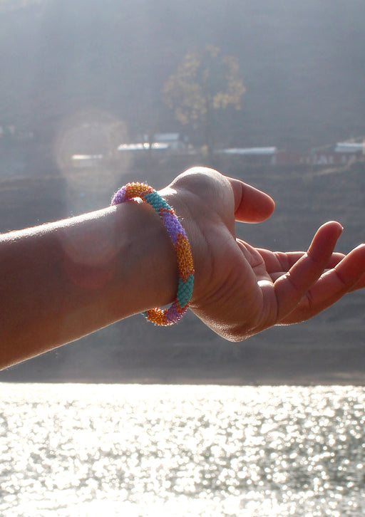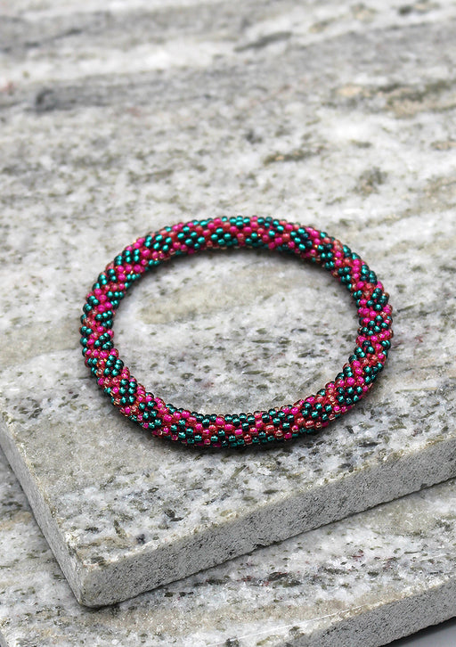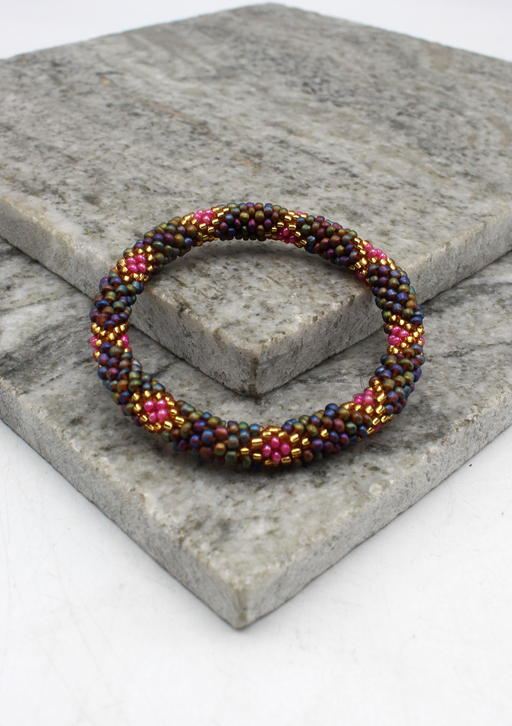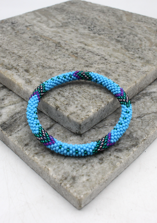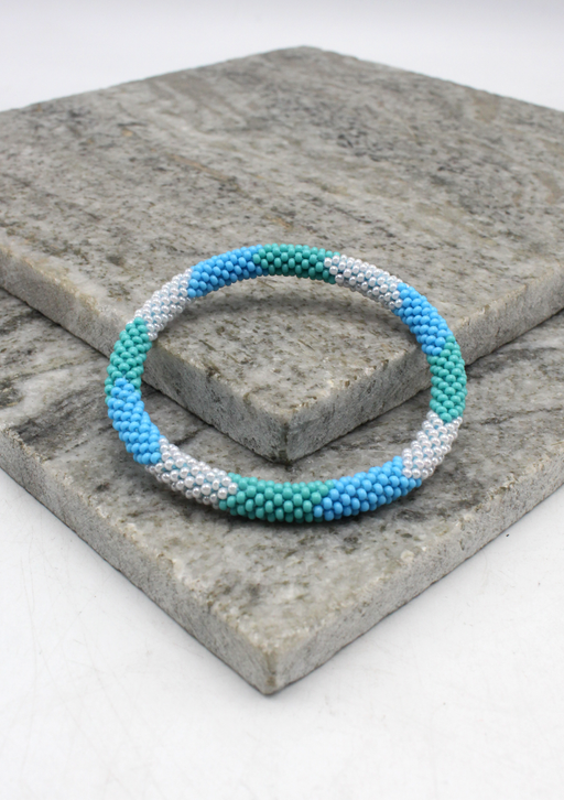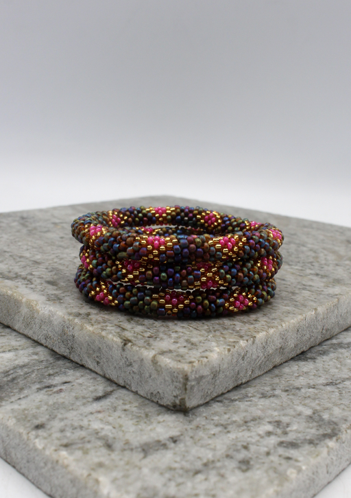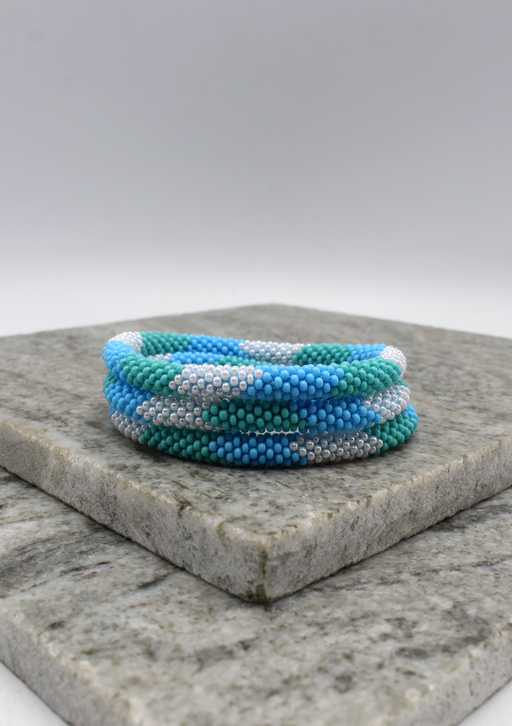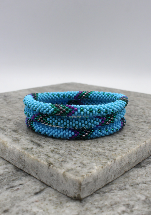 Our Roll Beads Bracelets are beautifully hand-crocheted by skilled women artisans in Nepal using high-quality glass beads. Designed to roll easily over any wrist size, these bracelets are both stylish and comfortable. Perfect for stacking or wearing alone, they add a vibrant, handcrafted touch to any outfit.
