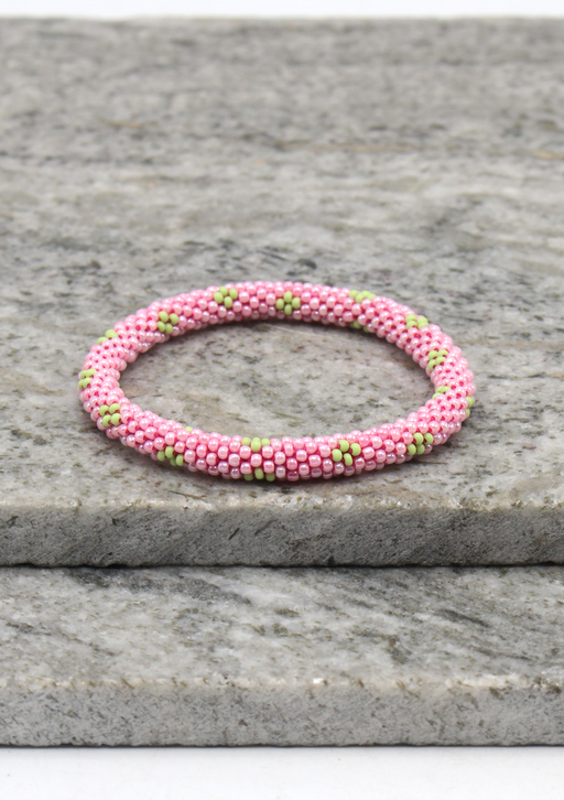 Pretty Pink Nepalese Roll On Bracelet has been meticulously crocheted by our women artists. Our women artists have carefully hand-strung this fairl...