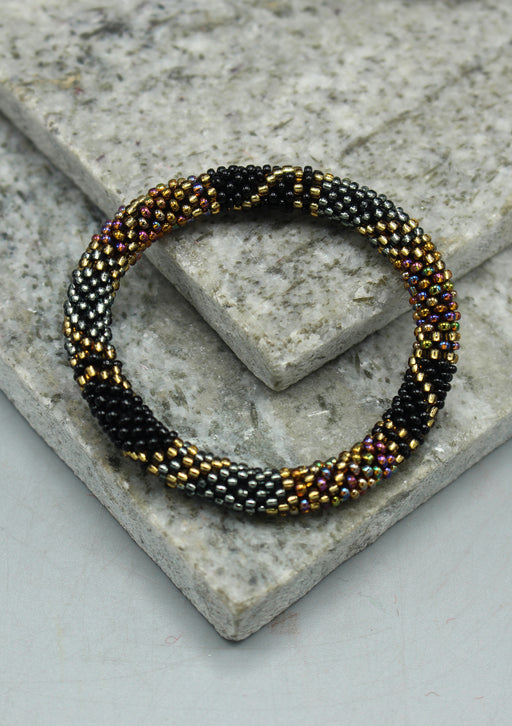 View full detailsShiny Gold, Black & Mixed Color Beads Nepalese Roll on Bracelet