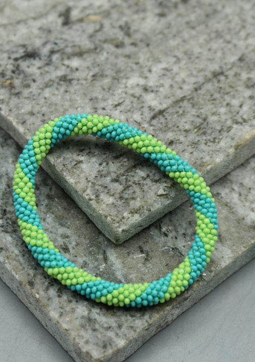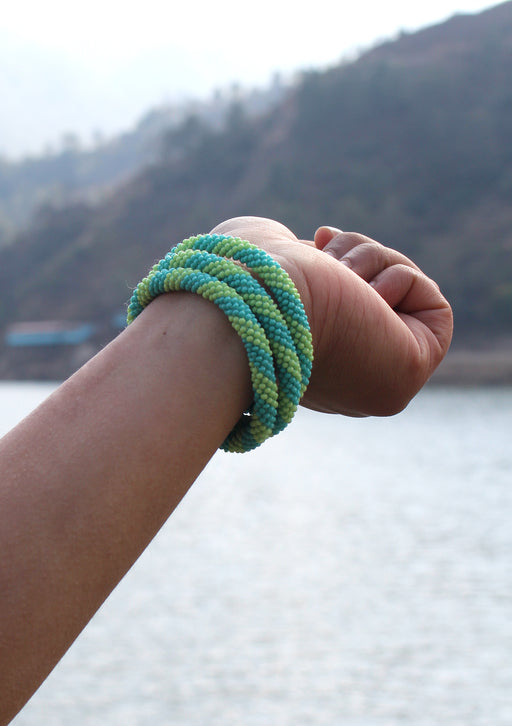 Green Nepalese Roll On Bracelet has been meticulously crocheted by our women artists. Our women artists have carefully hand-strung this fairly trad...