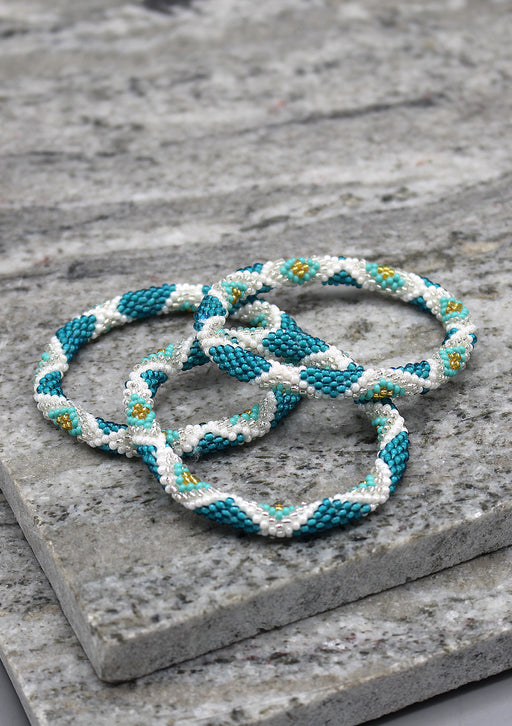Our Roll Beads Bracelets are beautifully hand-crocheted by skilled women artisans in Nepal using high-quality glass beads. Designed to roll easily over any wrist size, these bracelets are both stylish and comfortable. Perfect for stacking or wearing alone, they add a vibrant, handcrafted touch to any outfit.