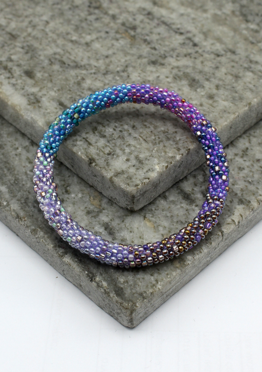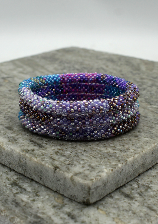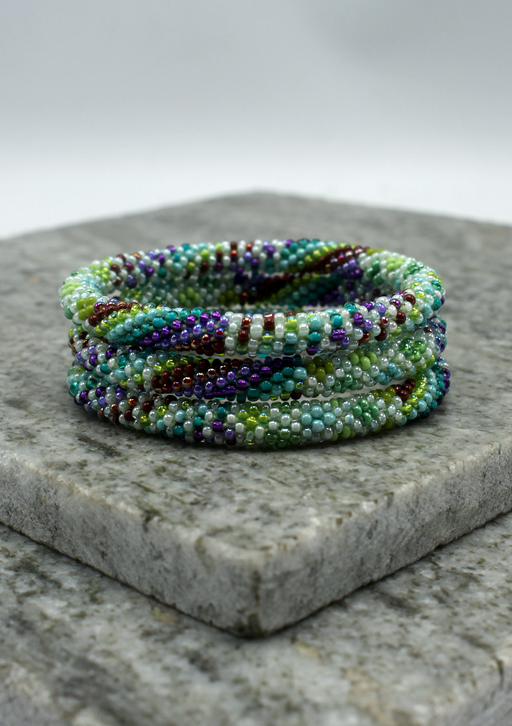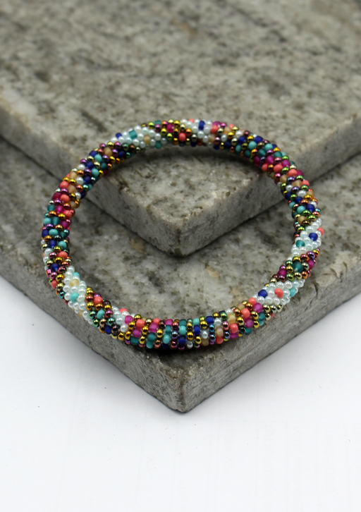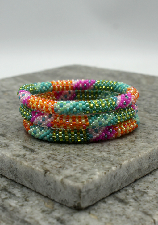 Our Roll Beads Bracelets are beautifully hand-crocheted by skilled women artisans in Nepal using high-quality glass beads. Designed to roll easily over any wrist size, these bracelets are both stylish and comfortable. Perfect for stacking or wearing alone, they add a vibrant, handcrafted touch to any outfit.