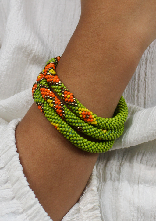 Our Roll Beads Bracelets are beautifully hand-crocheted by skilled women artisans in Nepal using high-quality glass beads. Designed to roll easily over any wrist size, these bracelets are both stylish and comfortable. Perfect for stacking or wearing alone, they add a vibrant, handcrafted touch to any outfit.