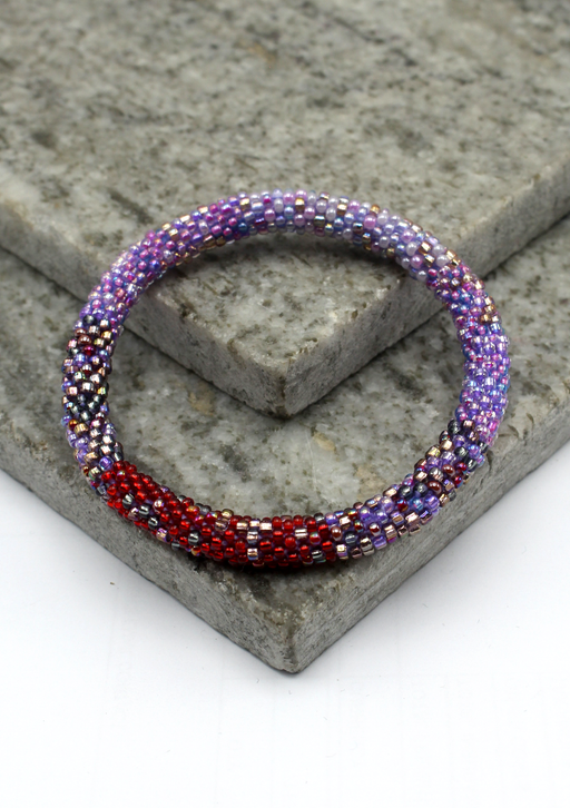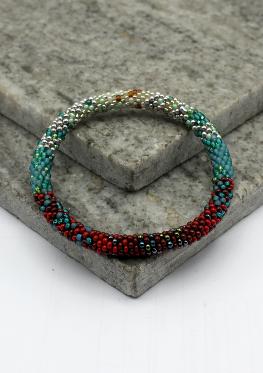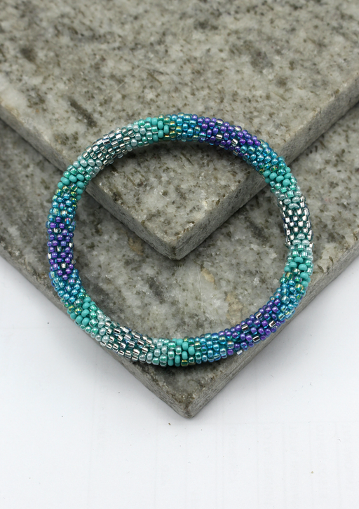Our Roll Beads Bracelets are beautifully hand-crocheted by skilled women artisans in Nepal using high-quality glass beads. Designed to roll easily over any wrist size, these bracelets are both stylish and comfortable. Perfect for stacking or wearing alone, they add a vibrant, handcrafted touch to any outfit.