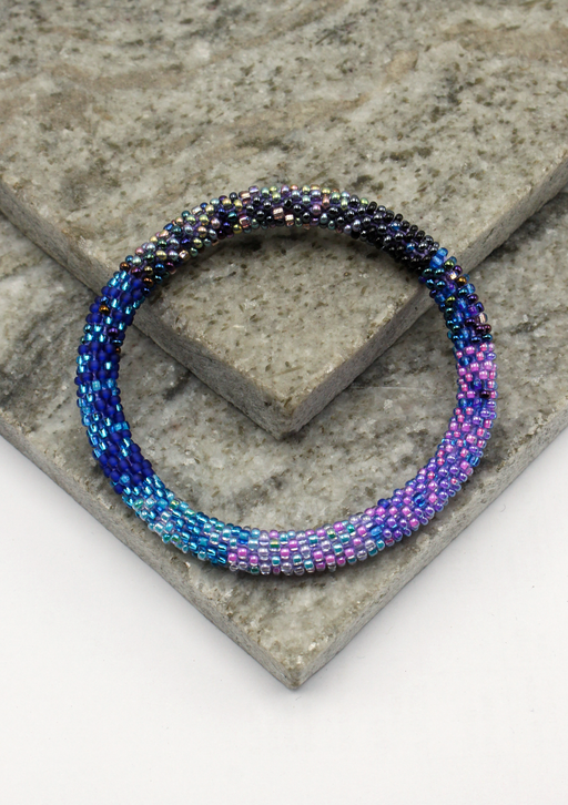 Our Roll Beads Bracelets are beautifully hand-crocheted by skilled women artisans in Nepal using high-quality glass beads. Designed to roll easily over any wrist size, these bracelets are both stylish and comfortable. Perfect for stacking or wearing alone, they add a vibrant, handcrafted touch to any outfit.
