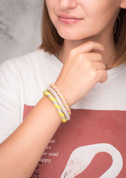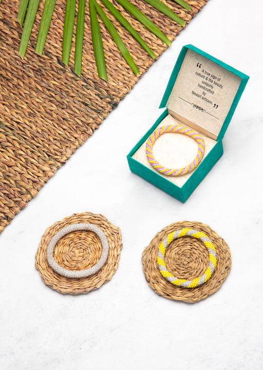 View full detailsFair Trade Nepalese Yellow Pink Roll on Beads Bracelet Set
