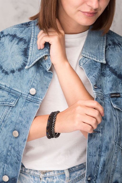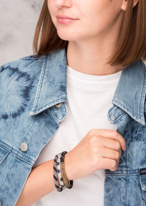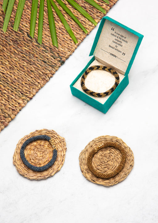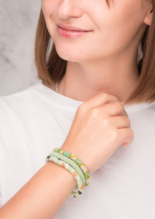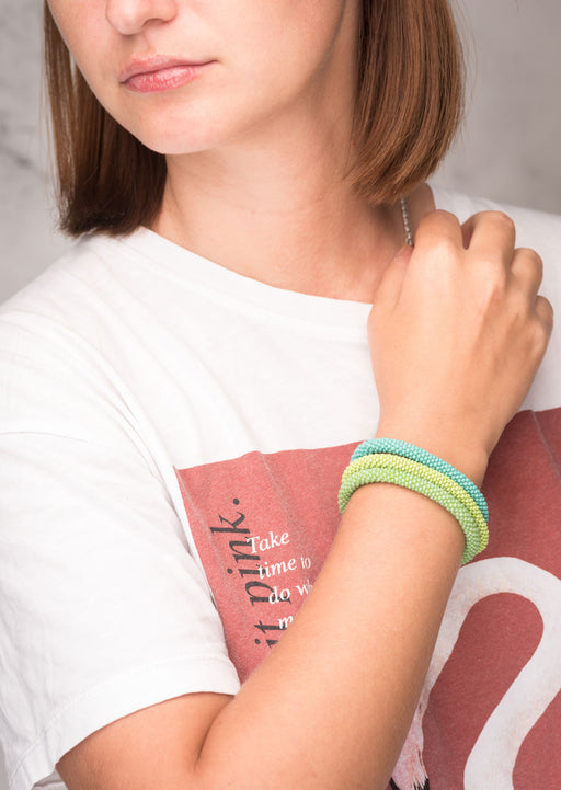 Our Roll Beads Bracelets are beautifully hand-crocheted by skilled women artisans in Nepal using high-quality glass beads. Designed to roll easily over any wrist size, these bracelets are both stylish and comfortable. Perfect for stacking or wearing alone, they add a vibrant, handcrafted touch to any outfit.