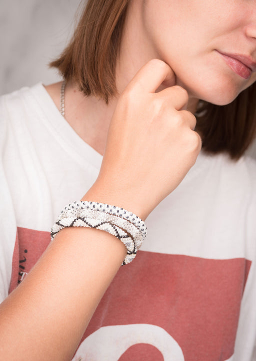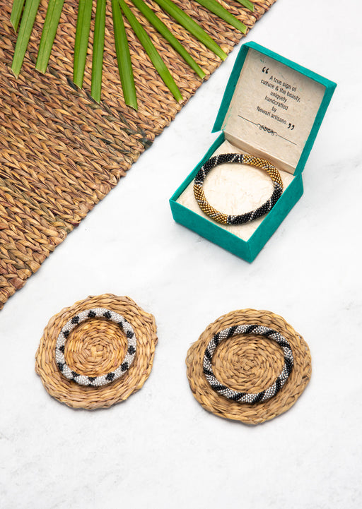 View full detailsFair Trade Nepalese Black White Roll on Beads Bracelet Set