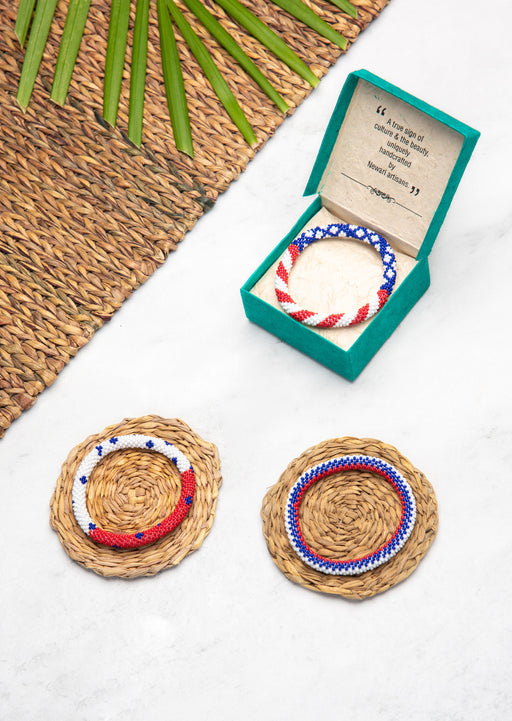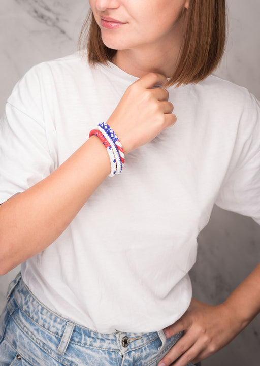 View full detailsFair Trade Nepalese Red Blue American Flag Roll on Beads Bracelet Set