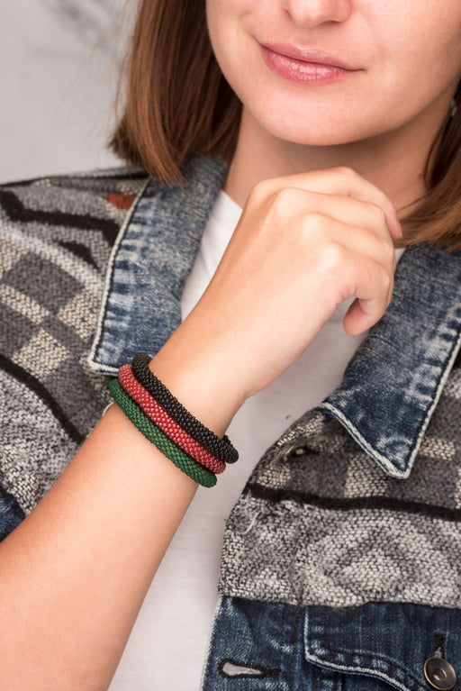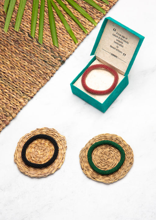 Fair Trade Nepalese Maroon Green Black Roll on Beads Bracelet Set