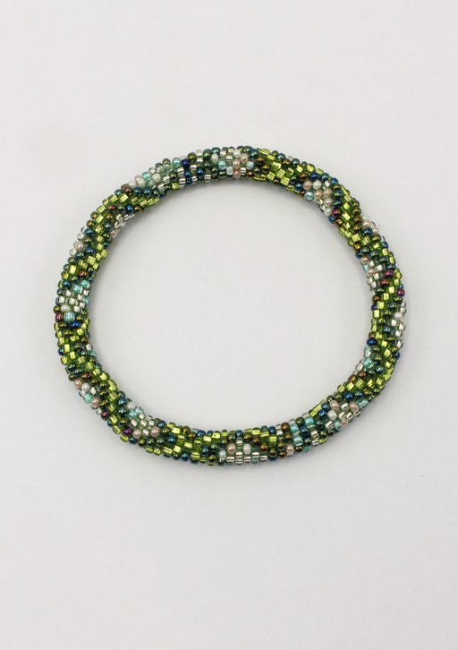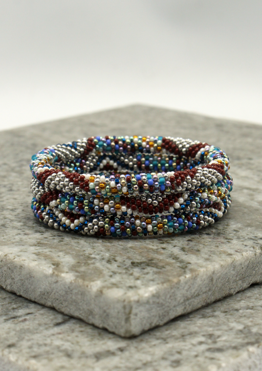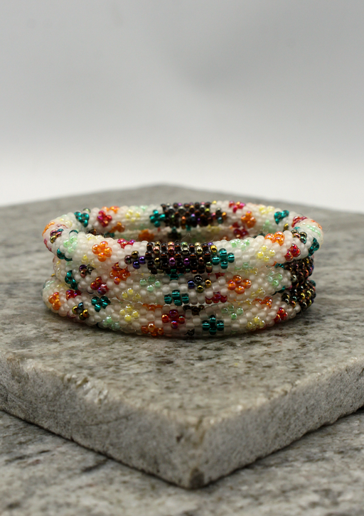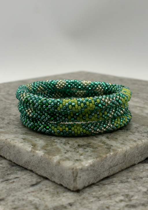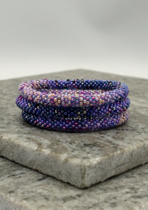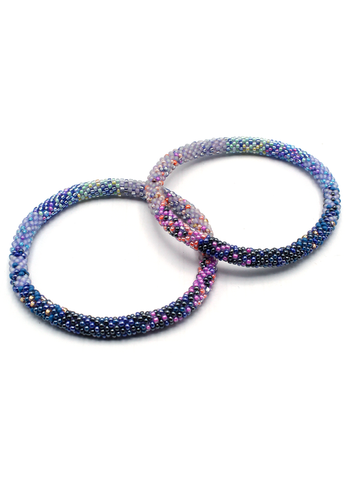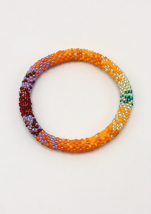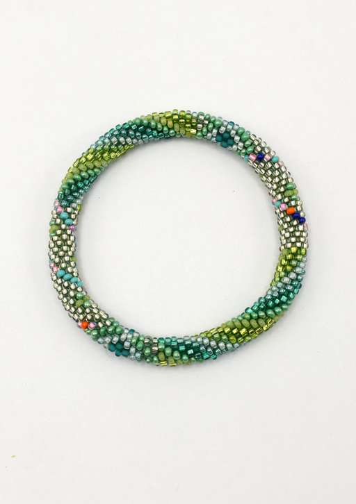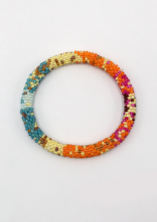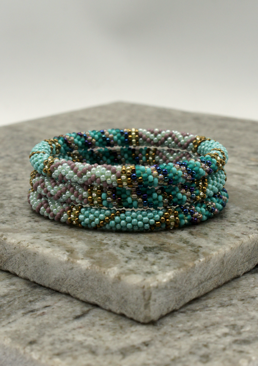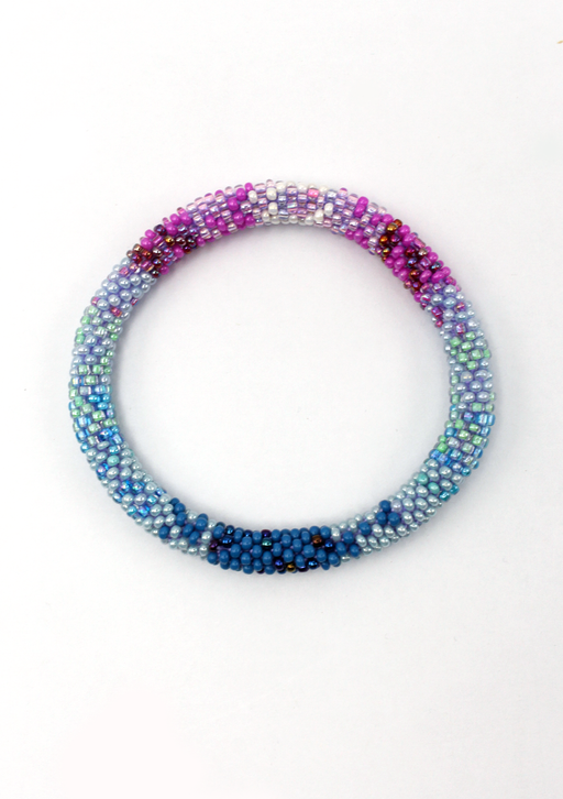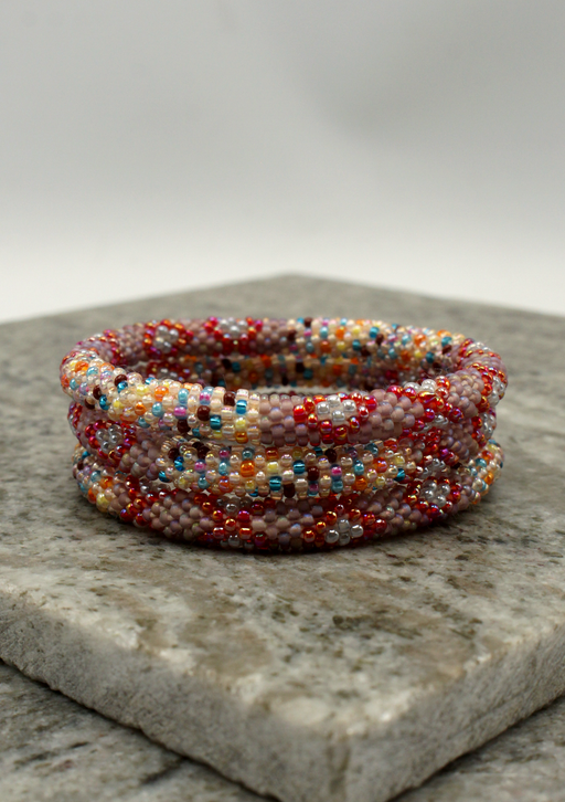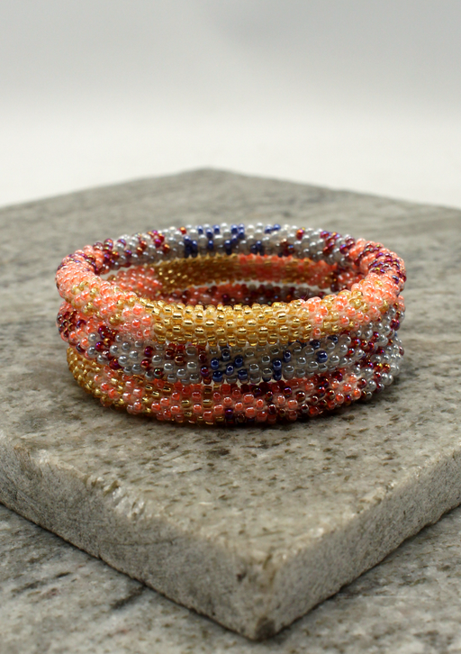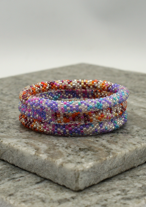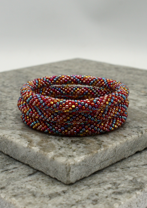 Our Roll Beads Bracelets are beautifully hand-crocheted by skilled women artisans in Nepal using high-quality glass beads. Designed to roll easily over any wrist size, these bracelets are both stylish and comfortable. Perfect for stacking or wearing alone, they add a vibrant, handcrafted touch to any outfit.