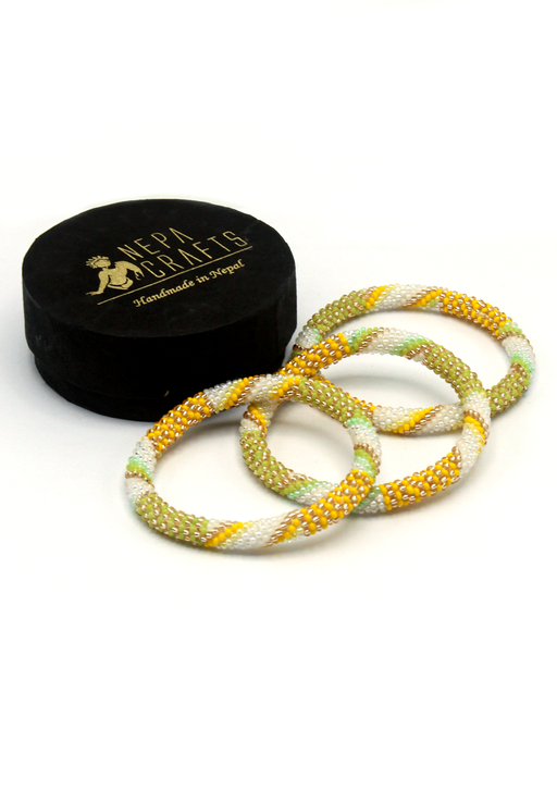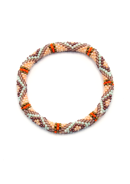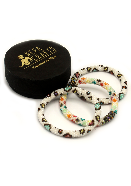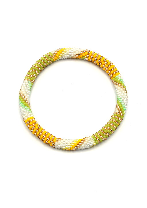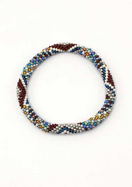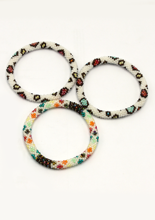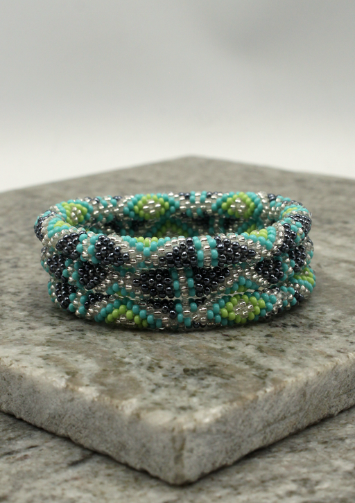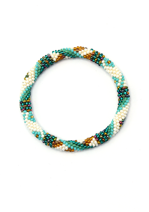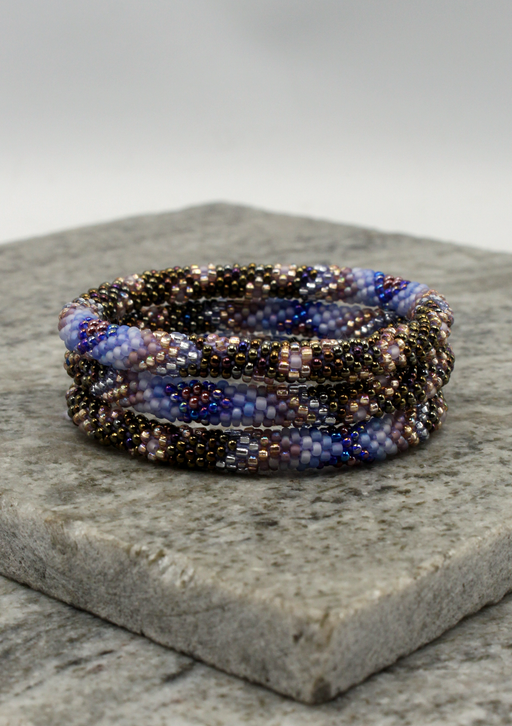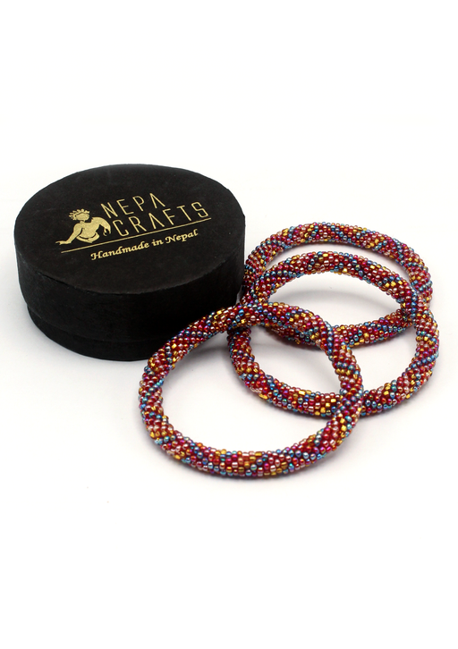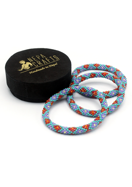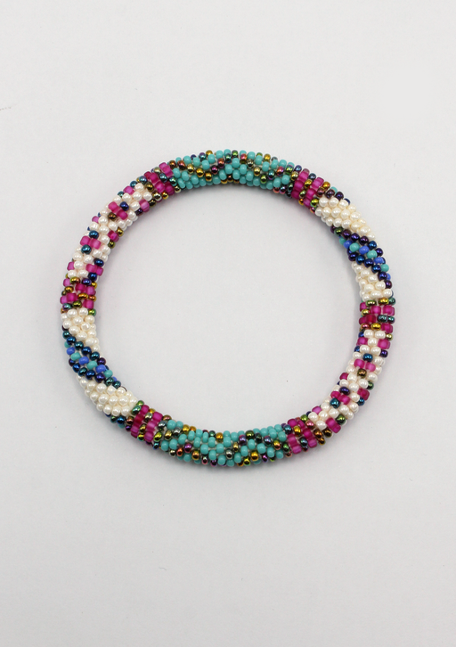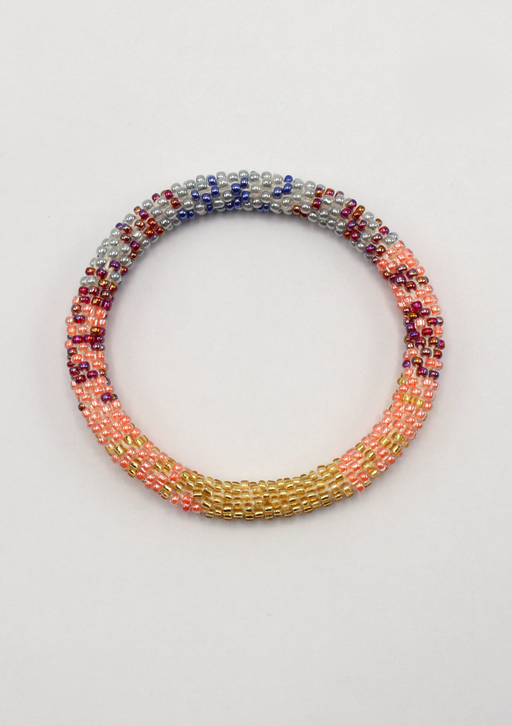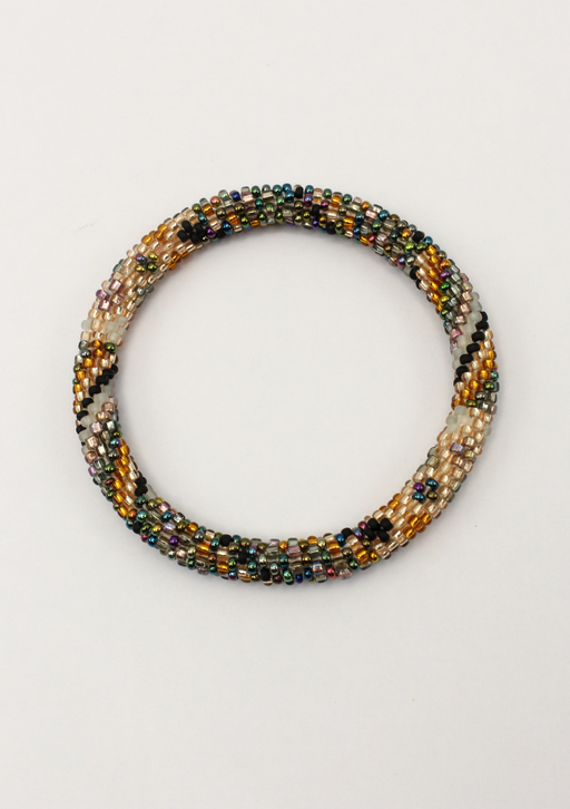 Our Roll Beads Bracelets are beautifully hand-crocheted by skilled women artisans in Nepal using high-quality glass beads. Designed to roll easily over any wrist size, these bracelets are both stylish and comfortable. Perfect for stacking or wearing alone, they add a vibrant, handcrafted touch to any outfit.