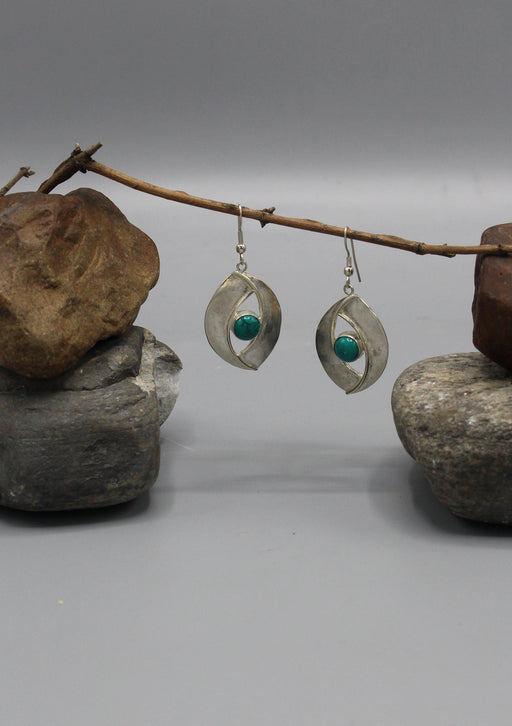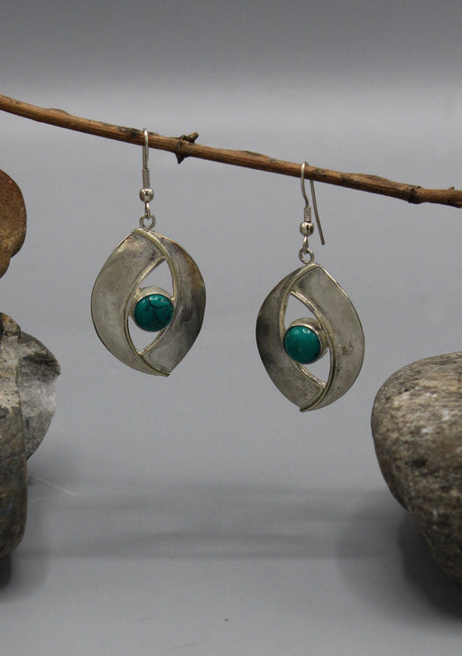 View full detailsEvil Eyes Protection Turquoise Inlaid Silver Plated Earrings