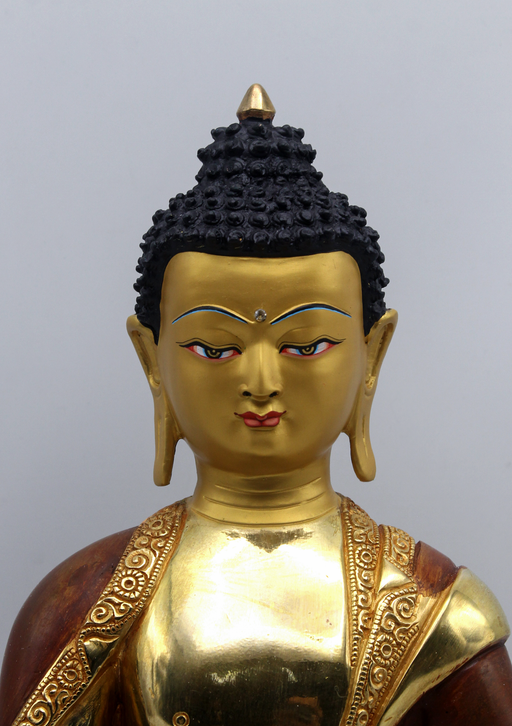 This Partly Gold Plated Shakyamuni Buddha Statue is meticulously handcrafted by the skilled artisans of Lalitpur-a city celebrated for its deep-roo...