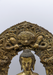 The most striking feature of this statue is its ornate aureole frame, intricately adorned with mythological motifs, swirling clouds, and protectors, all surrounding the figure like a sacred halo. Despite its age, the statue has retained a rich golden luster, enhanced by the natural patina that comes with time, giving it an authentic, vintage charm.