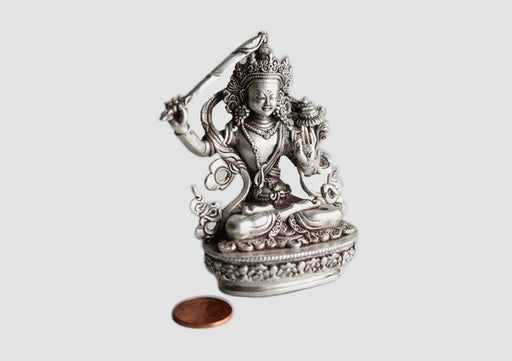 This is a 925 Silver Sterling Manjushri Statue. This statue is 8.5 cm high and is entirely made of Silver. Our artist who is an expert in statue ma...