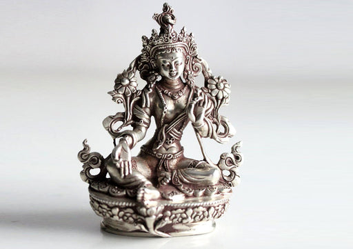 This is a 925 Silver Sterling Green Tara Statue. This statue is 8.5 cm high and is entirely made of Silver. Our artist who is an expert in statue ...