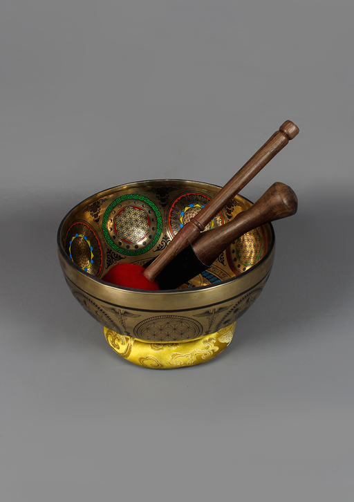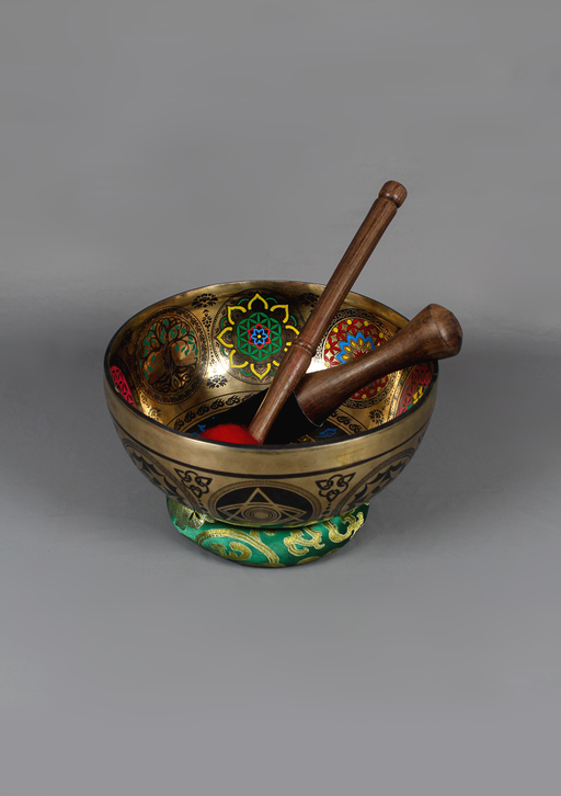 This exquisite singing bowl is beautifully hand-painted with a mandala - symbolizing the universe, harmony, and spiritual wholeness - and inscribed...