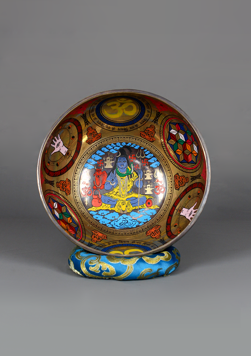 This Handpainted Shiva Singing Bowl is a stunning blend of artistry and spirituality, crafted to bring harmony and tranquility to your meditation a...