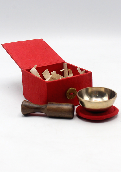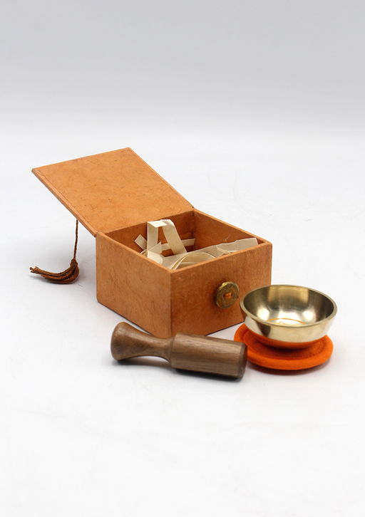 This singing bowl is a gift set which consists of individual stupa sticks, cotton pillow and are packed in silk brocade gift boxes. The singing bow...
