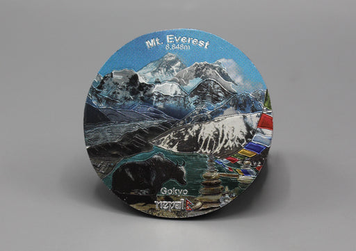 This is a round Mount Everest Gokyo Printed Aluminium fridge magnet from Nepal. Fridge magnet are the gift items and they are generally use to clip...