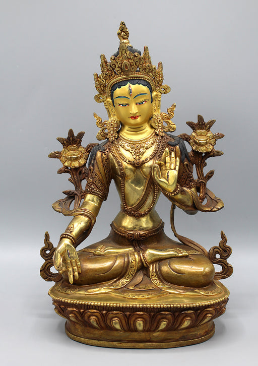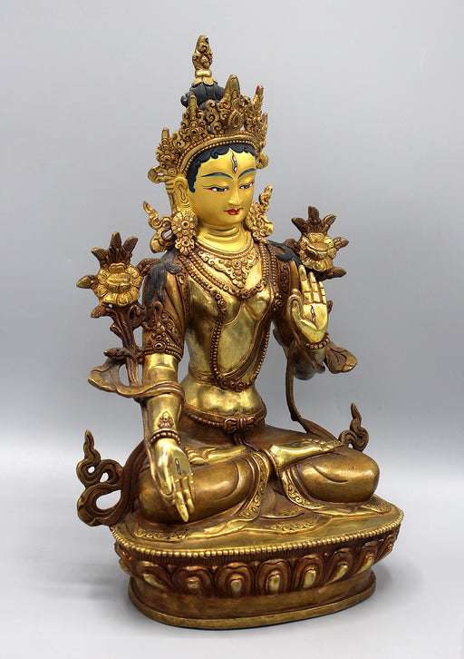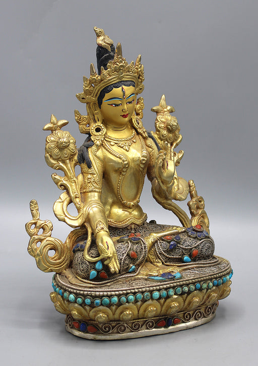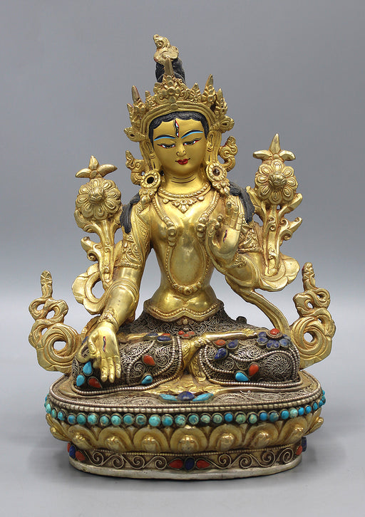 View full detailsPartly Gold Plated Copper Oxidized Green Tara Statue