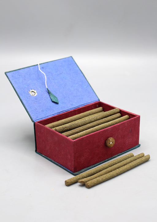 Discover the calming essence of Tibetan incense—hand-rolled using traditional Himalayan herbs, woods, and resins. Free from synthetic additives, each stick is crafted to promote relaxation, purification, and spiritual well-being. Perfect for meditation, yoga, or creating a peaceful atmosphere at home.