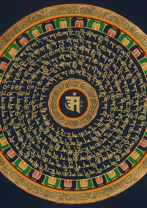 Here, a beautiful Tibetan Om is painted in the middle and surrounded by 6 Line Tibetan mantras. The red cotton canvas with golden color painting is the perfect color combination.