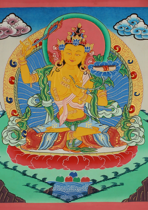 Manjushri, the Wisdom Buddha, represents enlightened wisdom in Buddhism. He is invoked for clarity of mind, insight, and the ability to overcome ig...