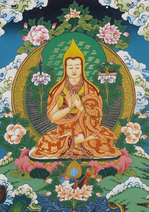 This is a Je Tsongkhapa thangka. The colors used in this thangka along with fine intricate linings of drawing make this thangka very peaceful.Je Ts...