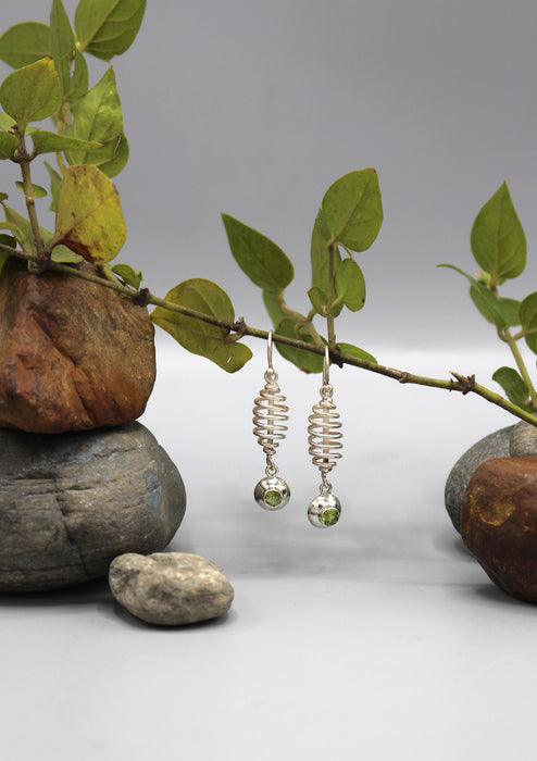 This earrings is a unique design made of silver and finely hand carved in Nepal. The earrings is carved beautifully and designed into a spiral roll with Amethyst and Citrine drop earrings. Amethyst has a healing properties and often regarded as protective and helpful in purifying the mind and clearing it of negative thoughts.